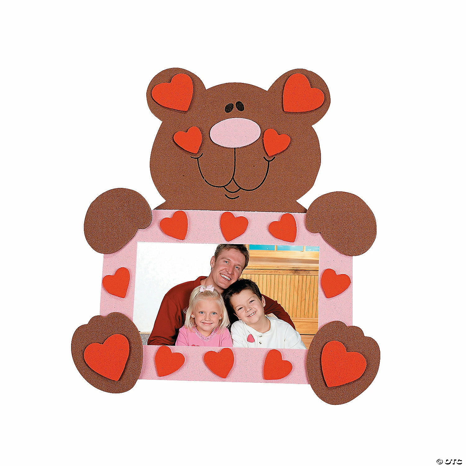 Bear Picture Frame Magnet Craft Kit. Frame your sweetie in a fun foam frame! 6 1/2″ x 8″; holds a 4 1/4″ x 2 1/2″ photo. All craft kit pieces are pre-packaged for individual use. Magnets are packaged separately. Do not discard. Kits include instructions and extra pieces. We recommend using foam glue, sold separately online. ยฉ OTCBear Picture Frame Magnet Craft Kit Instructions