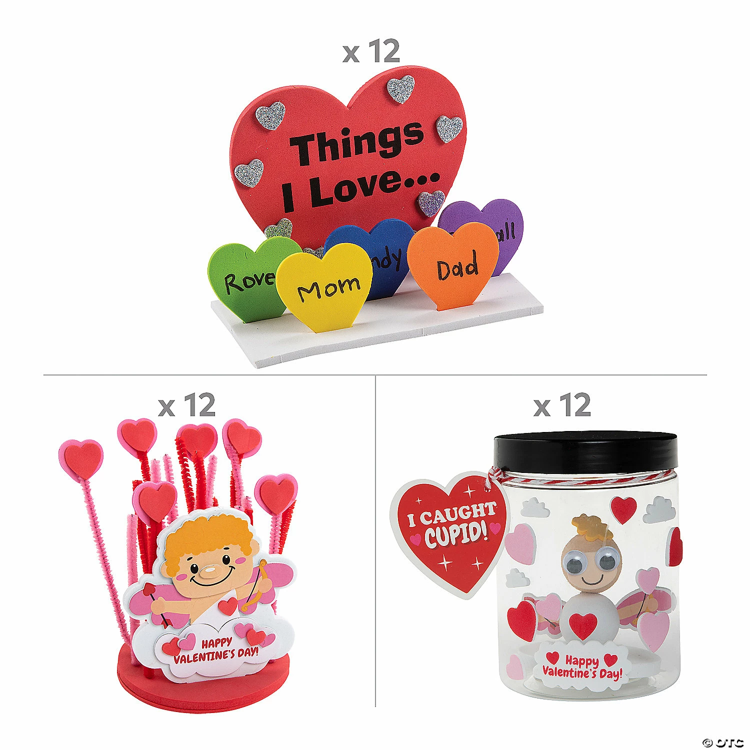 Kids love Valentine’s Day crafts! This charming Cupid is a fun foam craft kit that’s perfect for adding to your February classroom supplies β art projects like this are an ideal way to reward kids for good behavior during those boring late winter days. If you’re looking for candy alternatives, these whimsical cherubs are just the thing; they entertain long after the chocolate is gone, and children love hanging them on their walls to accent their bedroom dΓ©cor. Foam. 5 1/2″ x 5″ Makes 36. All craft pieces are pre-packaged for individual use. Kits include instructions. Β© OTCIncludes:12 I Caught Cupid in a Jar Craft Kits (Includes self-adhesive foam pieces, wooden dowel, googly eyes, cardstock card, bakerβs twine, styrofoam balls and plastic jar. 3″ x 4″12 Cupid in Heart Garden Craft Kits (Includes self-adhesive foam pieces and chenille stems. 5 1/2″ x 5″)12 3D Things I Love Heart Craft Kits (Includes self-adhesive foam pieces. 6 1/4″ x 4 1/4″)β’ Assortments are subject to change at any time and may vary from picture shown. Substituted items will be similar in nature.