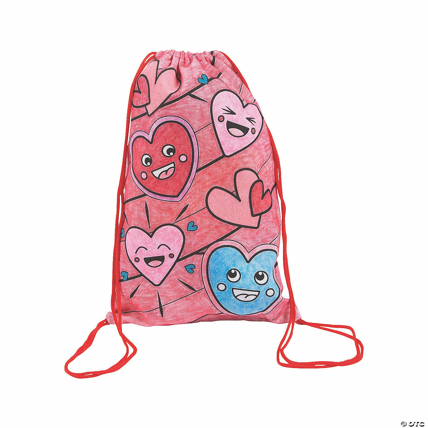 Donβt leave all the coloring fun to paper. Instead, color your very own accessories! Perfect for Valentine’s Day crafts, these drawstring backpacks feature a lovey-dovey design of smiling hearts. Kiddos of all ages will love using their favorite shades to bring ’em to life! 9 1/2″ x 15″ © OTC