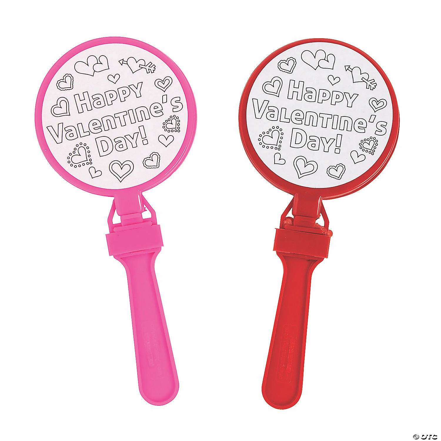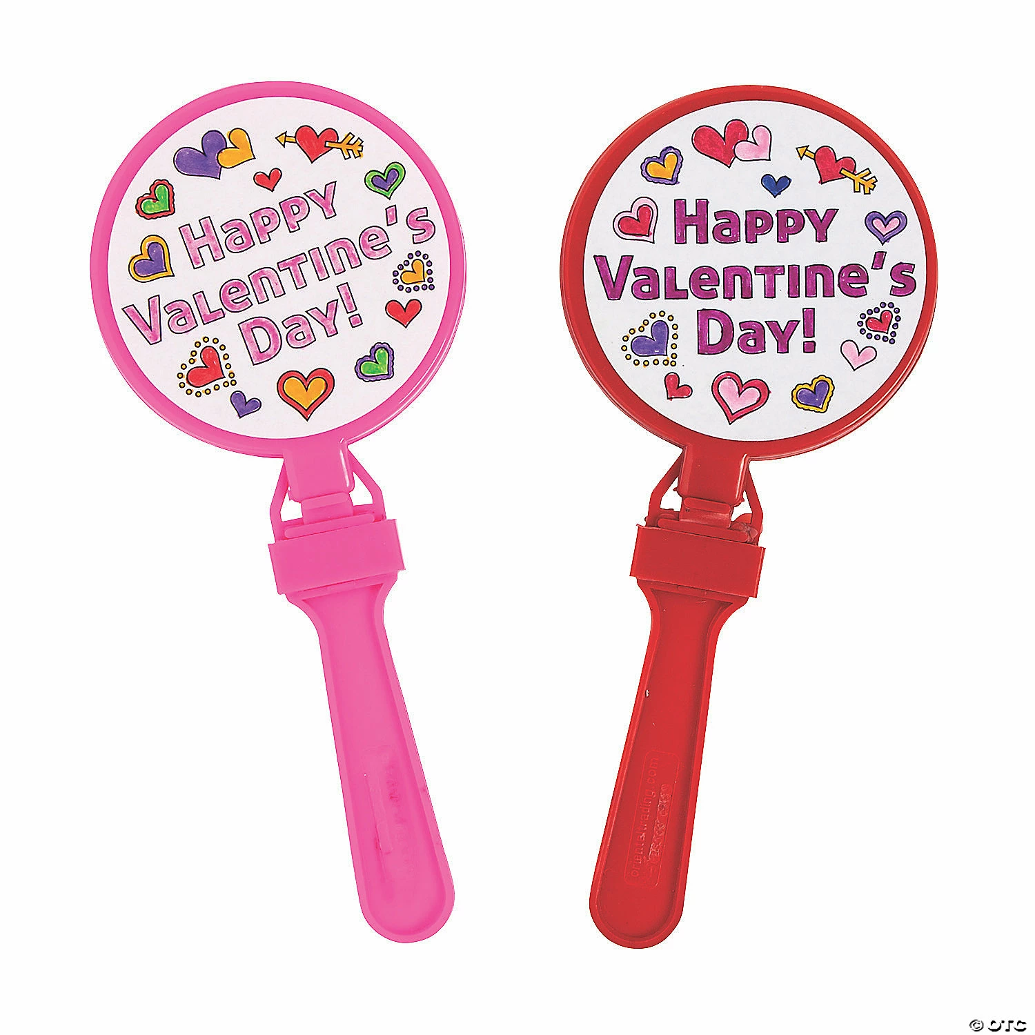 Make some noise for celebrating Cupidโs favorite day the creative way! Coming in classic holiday hues of pink and red with designs of hearts, these clappers are a great addition to Valentine kidsโ crafts. Little sweeties will swoon and crush as they use their favorite shades to bring each clapper to life! Once completed, these musical instruments double as noisemaking kidsโ toys. Plastic. 3″ x 7″ ยฉย OTC