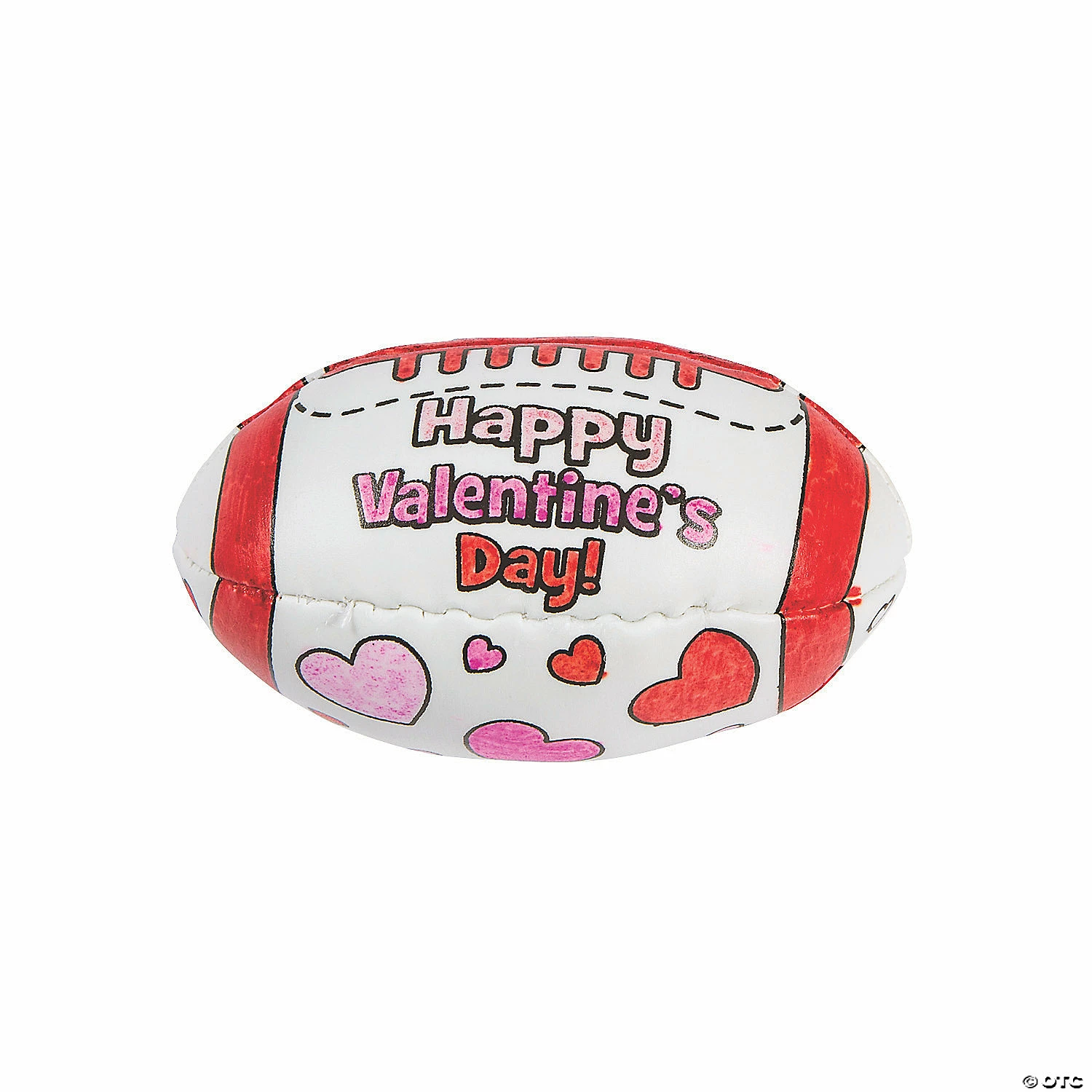 Tackle creativity for this lovey dovey day! A touchdown addition to Valentineβs Day crafts, these footballs feature heart designs waiting to be colored by kiddos. Hut, hut, hike them into goody bags or activity tables at your next Cupid-approved celebration. Little ones are sure to swoon! Vinyl. 4″ Β© OTC