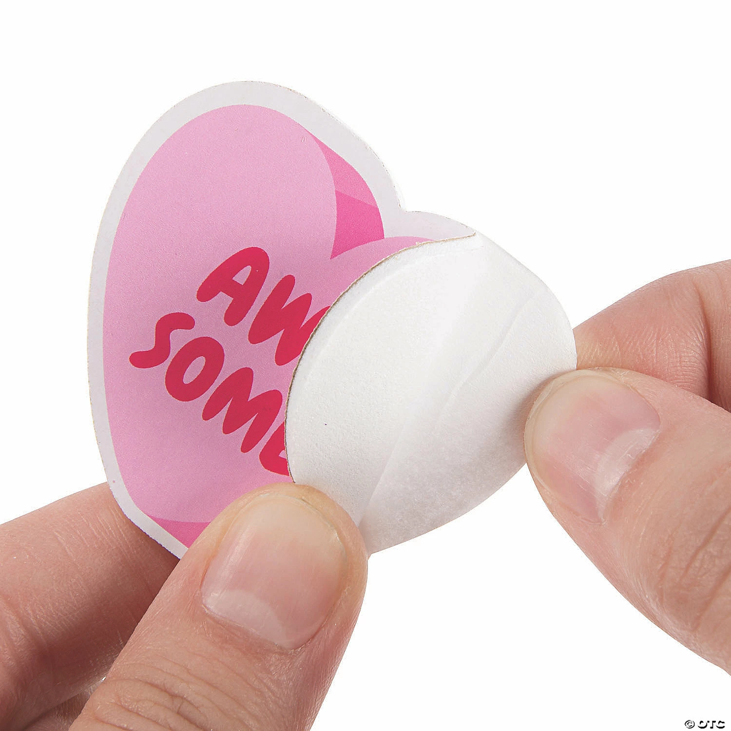 These candy conversation hearts wonβt be gone after a bite! Nope, instead, use βem to create all sorts of Valentineβs Day crafts. Coming in bright hues with sayings like βAwesomeβ, βYou Rockβ and βHugzβ, these self-adhesive shapes are a great addition to DIY supplies for kids. From scrapbook pages to Valentine cards to boxes used in a classroom exchange, use these on all sorts of pretty projects! Foam. (6 dozen per unit) 1″ – 2″ Β© OTC