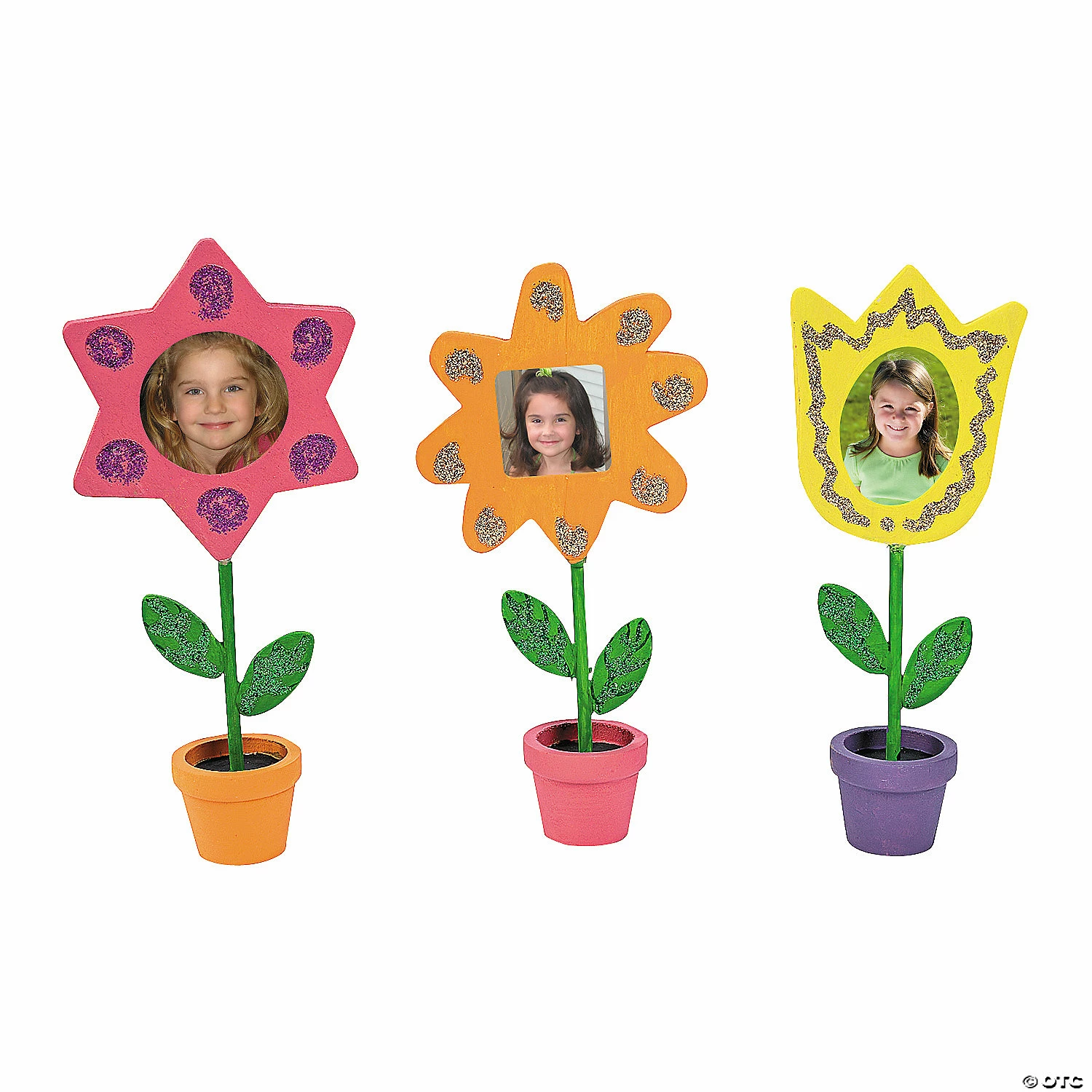 Do It Yourself Wood Flower Photo Holders. Paint a bouquet of DIY wooden craft photo holders! Wonderful way to display your children’s school photos and makes a terrific homemade present for grandparents. (1 dozen per unit) 6 1/2″ – 7″; holds 1 1/8″ – 1 1/2″ photos. Paint sold separately online.