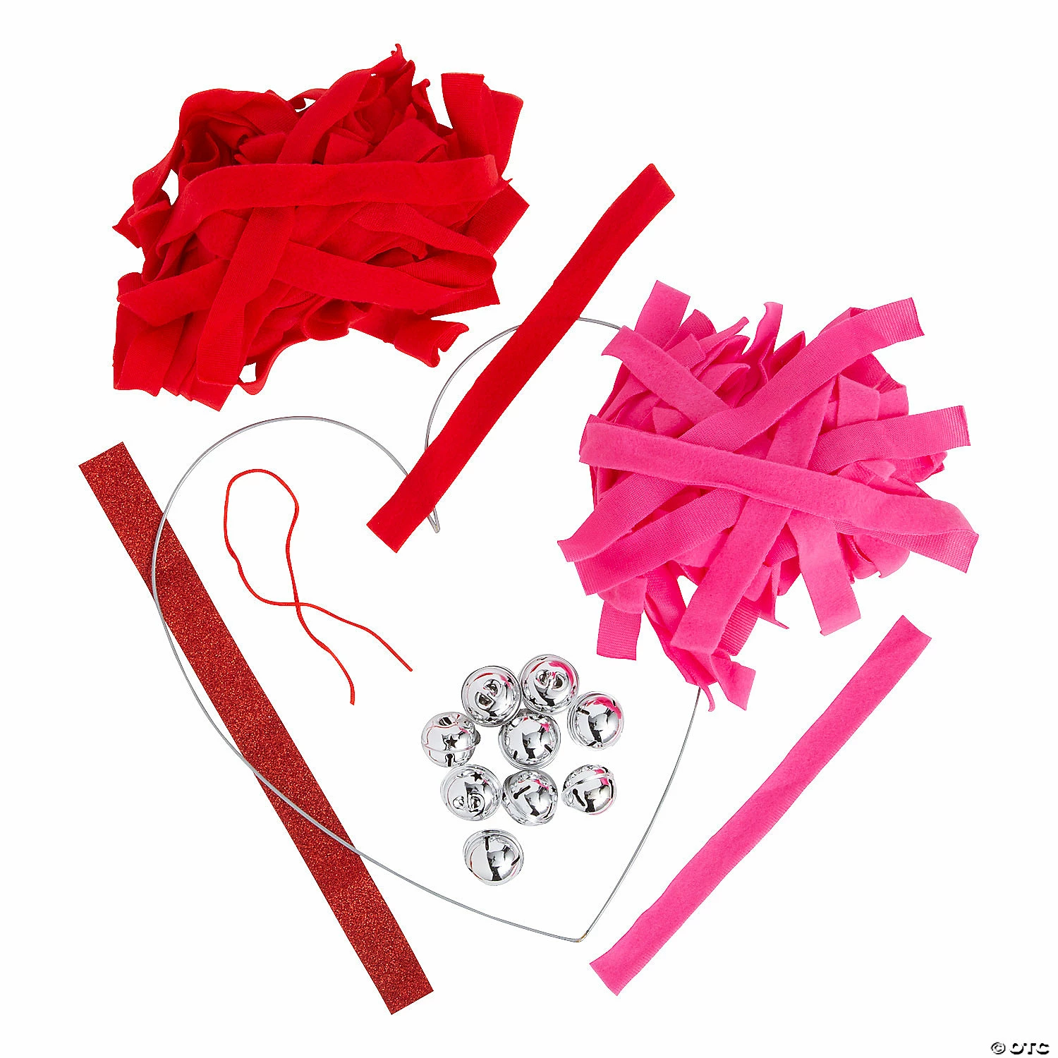 These cute heart wreaths are made with lots of love! Kids will have fun tying each of the fabric pieces around the frame to form a heart and adding the playful jingle bells. Once complete, they can take it home to proudly hang on their front door as a Valentineβs Day decoration. This craft is a great Valentineβs Day activity that will help keep kids busy! Includes metal wreath hoops, metal jingle bells and hangers. 15 1/2″ x 15 1/2″ Makes 3. All craft kit pieces are pre-packaged for individual use. Kits include instructions.