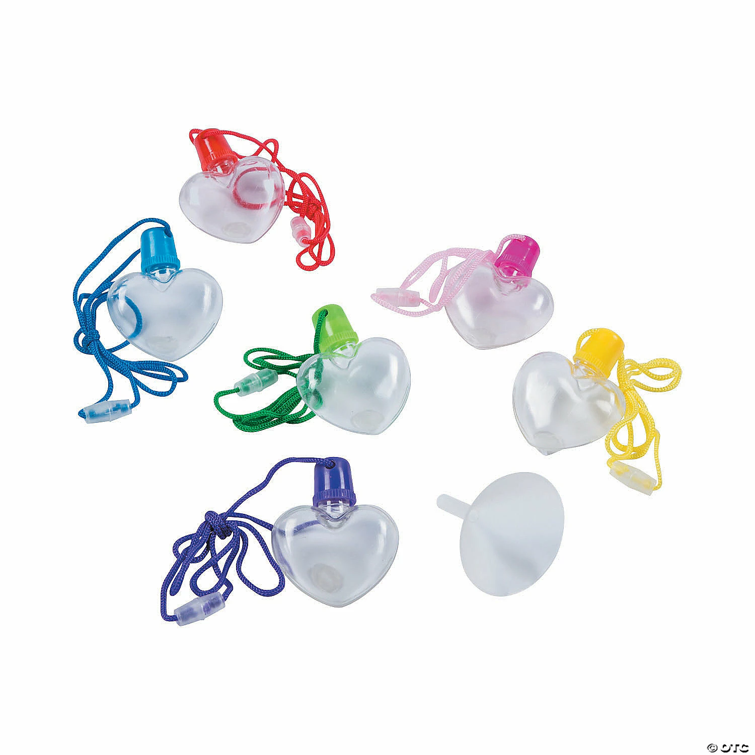 Heart Sand Art Bottle Necklaces. Brighten up your heart with colorful sand! A wonderful Valentine’s Day craft, these hearts will give girls and boys a chance to show what’s really in their heart. Fill these hearts by layering colored sand to create unique necklaces that are sure to be loved by all. Includes 1 funnel. Plastic. 2″ x 2 1/4″ on a 24″ nylon cord. Requires 6 oz. of total sand to fill all bottles. Sand sold separately online. Β© OTC