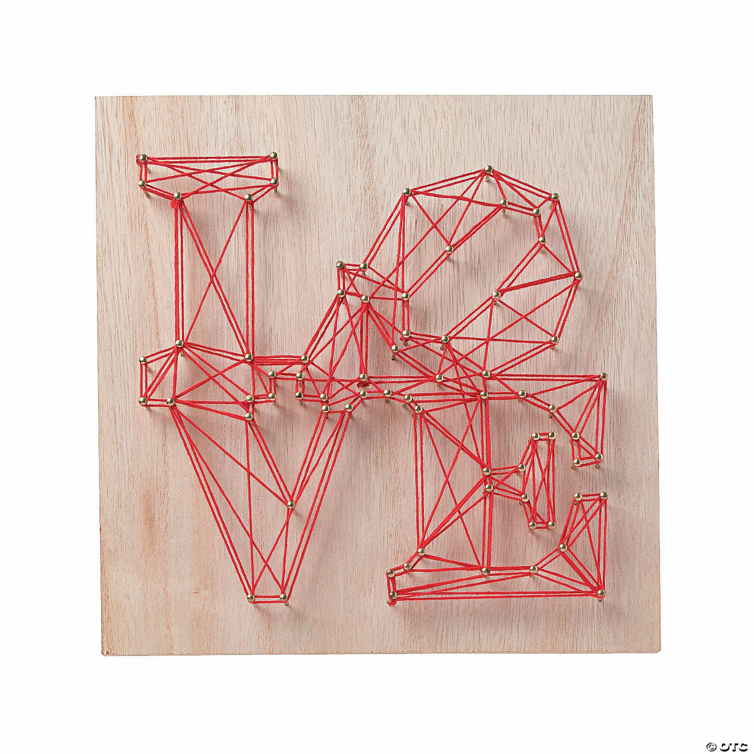 Create the iconic “LOVE” image with the tilted “O” with this Love String Art Craft. Wind and wrap the string around the pegs to make the word take shape. You’ll love the result, which makes a great home dΓ©cor piece. Give it away as a wedding gift or display it in your own home. Includes red string. Wood. 8 1/2″ x 8 1/2″ Includes hardware for hanging.Love String Art Craft Kit Instructions