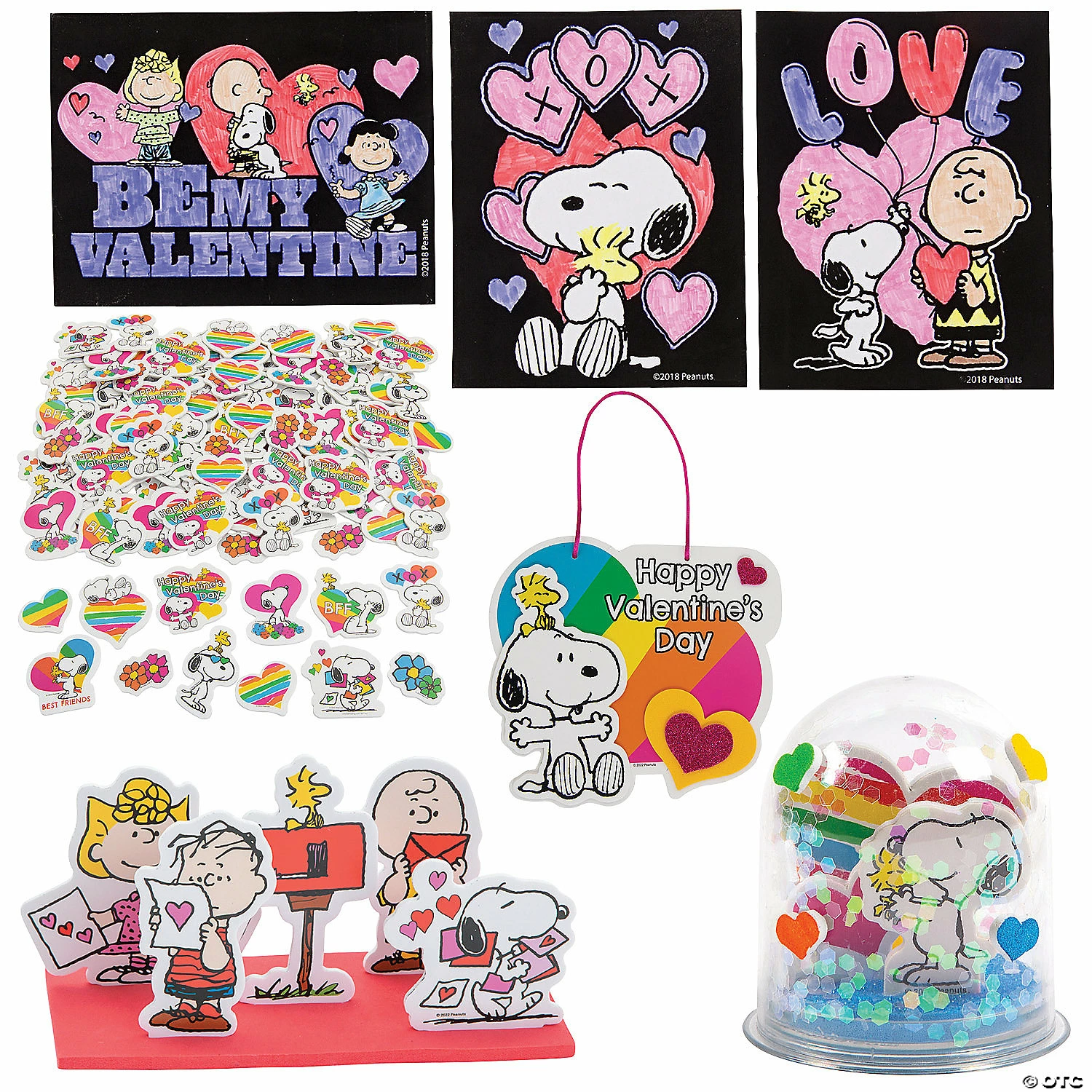 Join Snoopy and the whole Peanuts gang for some Valentine’s Day party fun! This kit is packed with an assortment of crafts and is perfect for kids of all ages. Make homemade decorations or use the foam shapes to create special arts and crafts projects like Valentine’s Day cards. (210 pcs. per unit) Makes 60. All craft kit pieces are pre-packaged for individual use. Kits include instructions. Assortment may vary.Includes: • 12 Foam 3D Peanuts® Valentine Mail Delivery Craft Kits (7 1/2″ x 3″ x 3 3/4″)• 24 Paper Peanuts® Color Your Own Fuzzy Valentine’s Day Posters (11″ x 8 1/2″)• 12 Peanuts® Valentine’s Day Glitter Snow Globe Craft Kits (Includes self-adhesive foam pieces, glitter and plastic globes. 2″ x 2 1/4″)• 12 Peanuts® Valentine Heart Sign Craft Kits (Includes self-adhesive foam pieces and satin cording. 6 3/4″ x 6″)• 150 Foam Peanuts® Valentine Self-Adhesive Shapes (1 3/4″ – 2 1/2″ x 1 1/4″ – 3″)