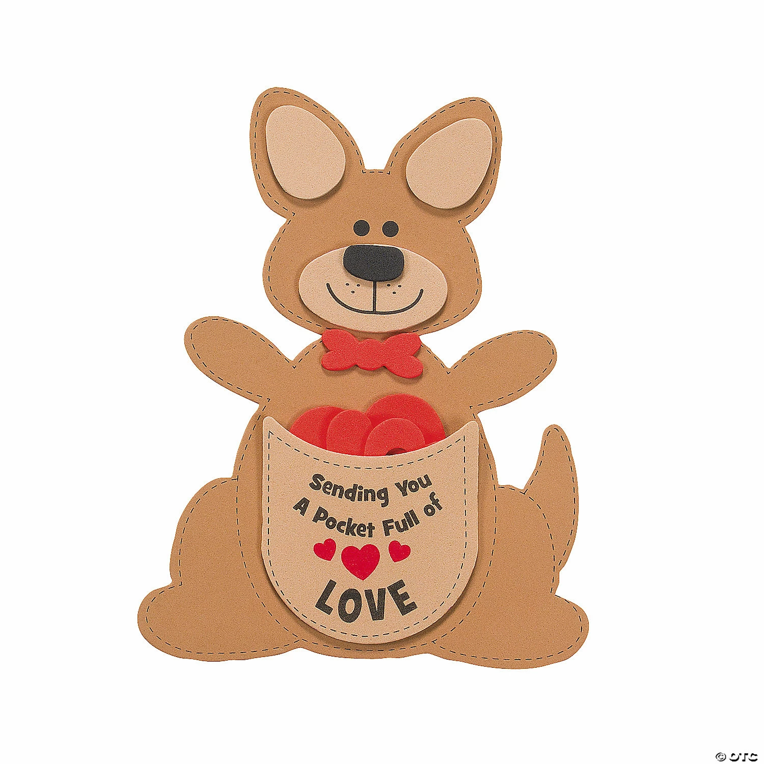 Send a homemade Valentine from down-under with this kangaroo craft for kids! They will love making this fun and easy craft during Valentineβs Day classroom parties and then taking him home to hang as a valentine decoration! Includes self-adhesive foam pieces. 7 1/2″ Makes 12. All craft kit pieces are pre-packaged for individual use. Kits include instructions and extra pieces. Β© OTC