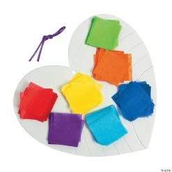 There are a few things children love β rainbows and creating fun crafts. Combine those two loves in this fantastic addition to kidsβ craft supplies. Apply colorful tissue paper to the self-adhesive foam hearts to create scenes of a rainbow streaking across a blue sky. Perfect for hanging around the classroom or at home. Little ones will love to see their finished craft displayed on the wall. Shop more craft kits for kids or fun art projects on our website! Includes self-adhesive surface and satin cording. Foam. 8″ x 7 1/4″ Makes 12. All craft kit pieces are pre-packaged for individual use. Kits include instructions. Β© OTC Rainbow Heart Tissue Paper Craft Kit Template/a