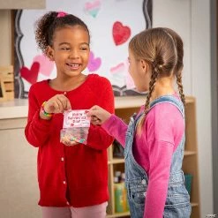 Go unique and have Valentine accessories as your exchange treat! Kids will love to complete and wear this bracelet craft and will enjoy it longer than a piece of candy! The best part is everything is pre-packaged and ready to go! Includes To/From space. Includes plastic pony beads, plastic bags and 14″ of stretchy cording. Bags, 4″ x 6″. Makes 24. All craft kit pieces are pre-packaged for individual use. Kits include instructions. © OTC